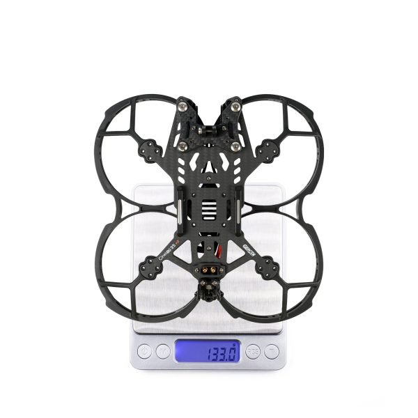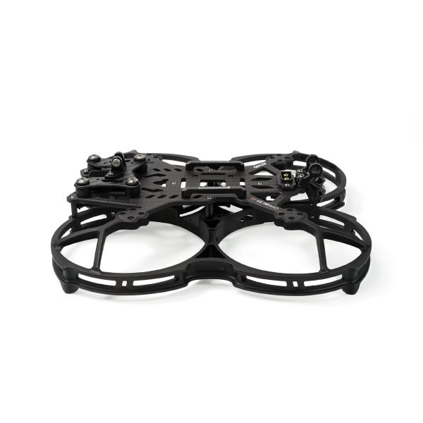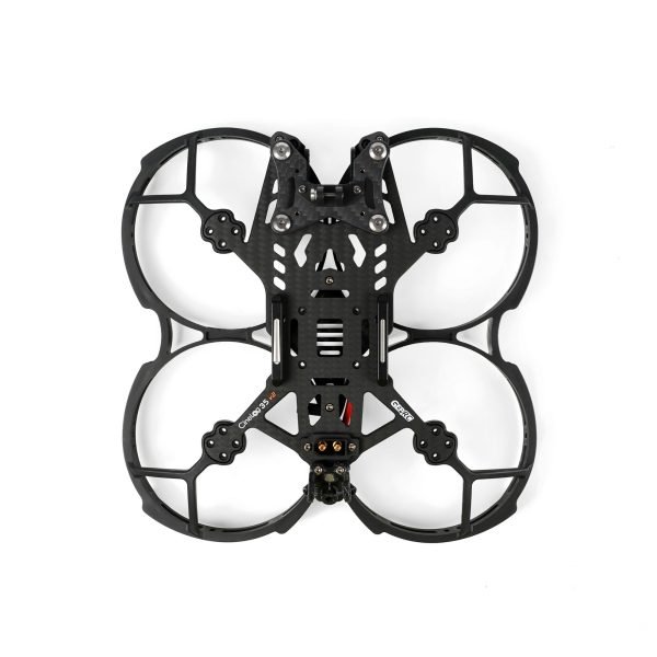 GEP-CL35 V2 is developed and upgraded on the basis of CL35. It can be mounted with O3 VTX. The camera adopts the bottom-mounted shock absorption gimbal to solve the camera IMU’s resonance issue, and achieve a good anti-shaking effect. The main carbon plate and injection prop guards increased the 7075 aluminum column for structural strengthening.